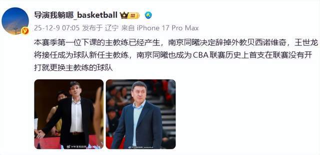 导演我躺哪是在12月9日早上7:05,通过社交平台发布的这一消息。导演我躺哪在社交平台写道:“本赛季第一位下课的主教练已经产生,南京同曦决定辞掉外教贝西诺维奇,王世龙将接任成为球队新任主教练,南京同曦也成为CBA联赛历史上首支在联赛没有开打就更换主教练的球队。”